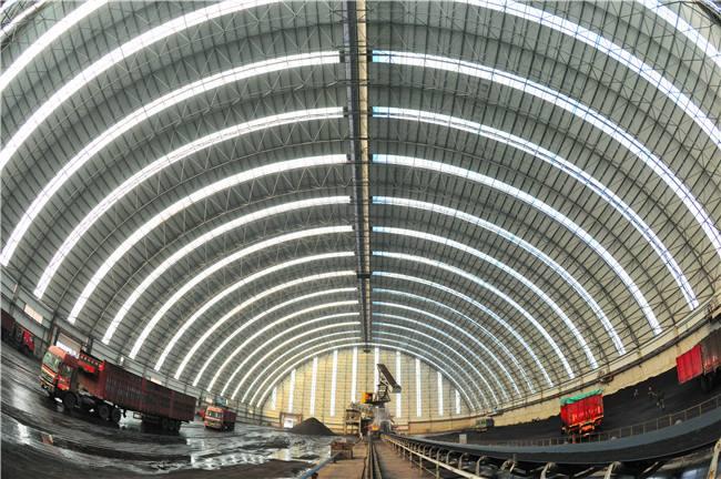 堆场料场封闭式主体结构为新型的钢富德网架结构,维修结构为钢结构富德不锈钢板和纤维增强塑料灯具,其外形以富德网架式和平板为主,连接柱富德施工自由,设置喷雾自动喷水系统,从而可以实现棚内所有物料的覆盖,减少物料在运输过程中的损耗,起到防尘的作用,减少工厂关闭后的二氧化硫排放量,50mg/m3颗粒排放量小于10mg/m3,非常适合低能耗。低闭库自动感应反应对库存轮胎进行清洁,确保轮胎不受道路污染;封闭的储存区可从源头控制粉尘污染,控制无序排放。